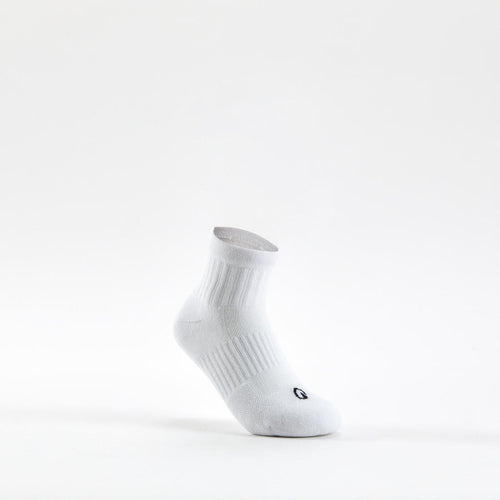 A photo of the CHAUSSETTES DE SPORT MI-HAUTES ENFANT ARTENGO RS 500 LOT DE 3 in use