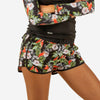 Ce boardshort femme court se porte au dessus du maillot de bain pour toutes les activités nautiques, avec ceinture élastiquée et cordon de serrage.