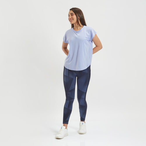 Ce T-shirt ample à la matière respirante et extensible est conçu pour toutes les sportives qui cherchent le confort sans négliger le style.