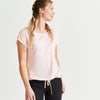 Léger et respirant, le T-shirt de sport flirte avec la mode sans négliger le confort. Sa coupe ample s'ajuste par un cordon de serrage pour un effet blousant. À porter seul ou sur un débardeur !