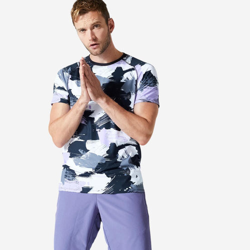 DOMYOS T-shirt de fitness essentiel respirant col rond homme - aop