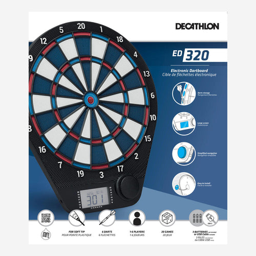 De 1 à 6 joueurs. 20 jeux facilement accessibles grâce à une navigation simple par bouton unique (molette). Vous retrouverez les jeux les plus classiques tels que le 301, le 501, le Cricket, le Count-up, le Shanghai, etc... La cible est fournie avec 6 fléchettes et est compatible uniquement avec les fléchettes à pointes en plastique.