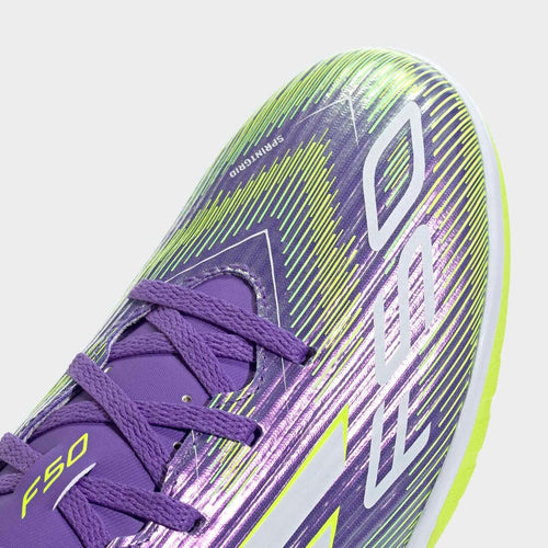 Optez pour cette chaussure F50 Club Futsal légère qui est conçue pour les joueurs rapides. Soyez le plus rapide durant vos entraînements et vos matchs.