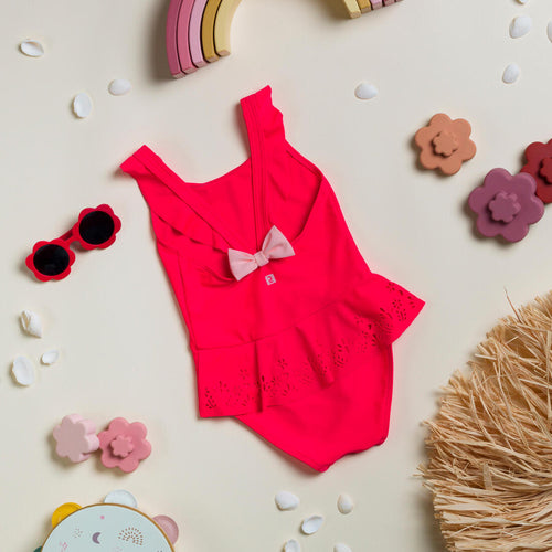 Maillot de bain 1 pièce bébé fille jupette rouge