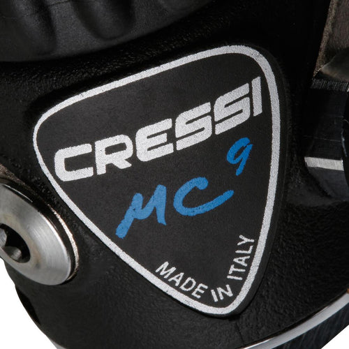 Le pack détendeur XS compact MC9 de Cressi est équipé d\'un premier étage compensé à membrane. Il est certifié pour une utilisation en eau non froide (température supérieure à +10 °C). Le détendeur DIN est certifié 300 bars. Résultats des tests de certification de l\'effort ventilatoire (simulation pression à 50 m et eau à 8 °C) - pression bloc de 50 à 200 bars : 1,1 J/L. Le travail ventilatoire est la mesure de l\'énergie (en joules) dépensée pour obtenir une ventilation de 1 litre.