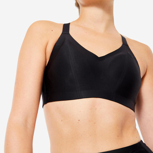 Le maintien élevé offert par cette brassière permet une pratique confortable d\'activités à fort impact comme le hit, les circuits cardio, le body attack, l\'équitation, le trampoline…