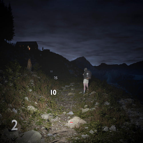 Le faisceau large de la lampe frontale FORCLAZ HL500 USB permet de répartir la lumière uniformément pour bien voir devant soi et sur les côtés.