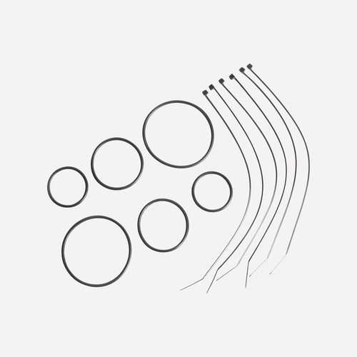 - 6 colliers de serrage (2mm x 170mm) - 2 élastiques caoutchouc de diamètre 3cm - 2 élastiques caoutchouc de diamètre 4cm - 2 élastiques caoutchouc de diamètre 6cm
