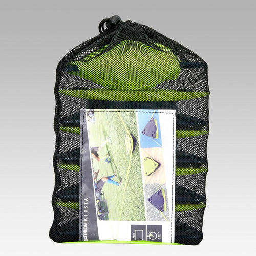 Parce qu\'un match ne se joue pas uniquement sur un terrain de football, l\'équipe de conception a imaginé un produit que l\'on peut facilement transporter, pour créer une zone de jeu n\'importe où (dans un jardin, sur la plage...). Pour cela, les 4 bases et l\'élastique se rangent dans un filet résistant, pour que le terrain ne vous quitte jamais!