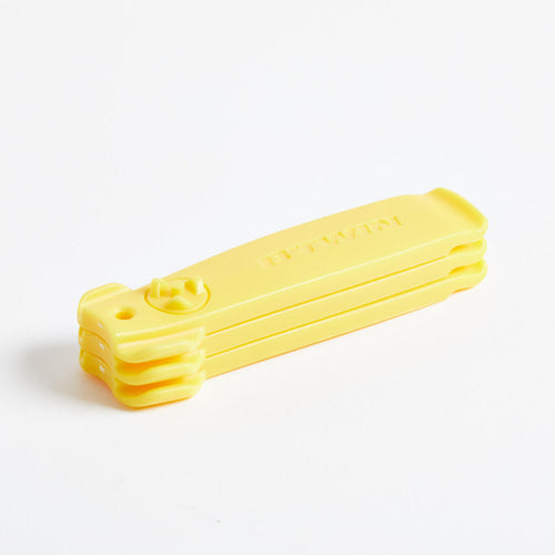 Facile, solide, léger et pratique, ce lot de 3 démonte-pneu vous permet en quelques gestes de démonter vos pneus. Il s'adapte à tous types de pneus et vélos : VTT, VTC, vélo route et vélo ville.