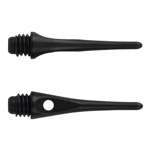 Toujours vérifier que la pointe est bien vissée avant de lancer la fléchette. Les pointes plastiques cassent si la fléchette arrivent en dehors de la cible. Le trou dans la pointe permet d\'insérer la pointe d\'une autre fléchette afin de serrer au maximum .