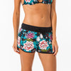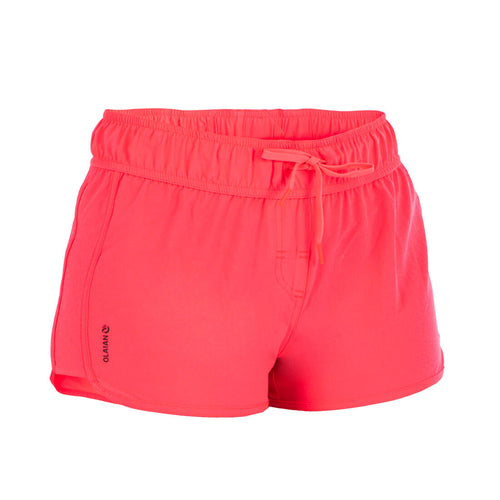 Ce boardshort femme court se porte au dessus du maillot de bain pour toutes les activités nautiques, avec ceinture élastiquée et cordon de serrage.