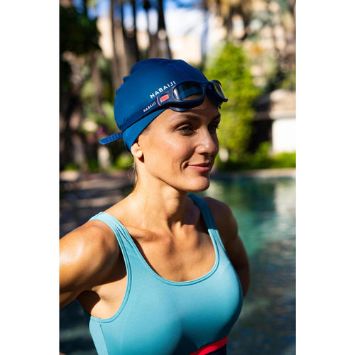 À mi chemin entre le bonnet en tissu et le bonnet en silicone, ce modèle en maille enduite conserve son élasticité tout en assurant un bon maintien et en limitant les entrées d'eau pendant la nage.