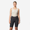 Notre nouvelle peau femme offre un confort d’assise aussi bien sous les ischions que sous le périnée. La zone de renfort est assez étroite au niveau de l’entrejambe et est assemblée en couture zigzag pour éviter les irritations et frottements lors du pédalage. La mousse est moelleuse, avec une densité mesurée de 100 kg/m3 et une épaisseur de 13 mm. Elle est également bi-élastique, ce qui lui permet de s’adapter facilement à la morphologie de la cycliste.