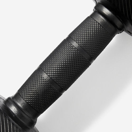 En tenant compte de vos retours, nous avons amélioré ce dumbbell avec 6 faces pour éviter qu\'il ne roule au sol. Son revêtement en caoutchouc offre une protection optimale contre les chocs et réduit les bruits d\'impact. La poignée ergonomique, équipée d\'une zone antidérapante et d\'une forme bombée, assure une prise en main idéale.