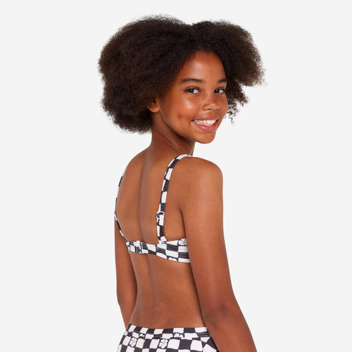 Haut de maillot de bain brassière réglable Fille - 500 Nora noir et blanc