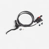 Montage étrier : PM Longueur de durite : 1000mm/1700mm Leviers 3 doigts Réglage: garde du levier Huile : Minérale Plaquettes: résine Nombre de piston: 2 Couleur: Noire Visserie fournie