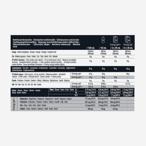 Ce gel énergétique s\'offre un nouveau format et une nouvelle formule. Un format plus grand, qui contient 30 grammes de glucides, pour en avoir plus en une seule prise. Et dans l\'Energy Gel + un ratio glucose et fructose 2 :1, validé par la science et les athlètes, qui améliore les performances*. *Les solutions de glucides contribuent à l\'amélioration de la performance physique lors d\'un exercice physique de forte intensité et de longue durée chez les adultes entraînés.