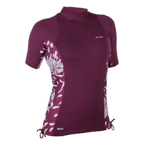 tee shirt anti uv surf top 500 manches courtes femme turquoise et